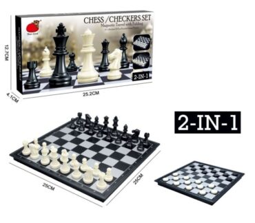 Magnetiniai šachmatai + šaškių rinkinys 25 x 25 cm