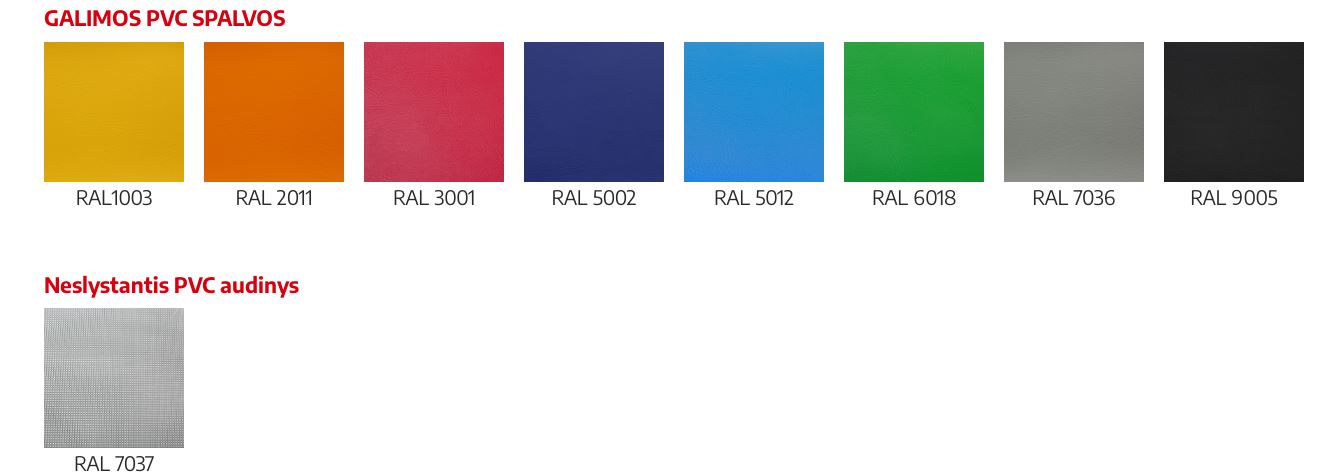 . Dugnas: neslystantis PVC audinys.