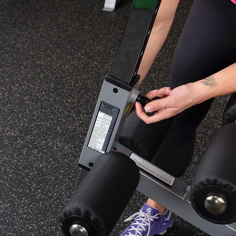 5 x 5 cm plieninės stovas, su 12 padėčių, kad padidėtų ar sumažėtų sunkumas atliekant pratimus. Turi ypač platų, storą dvigubai susiūtą „DuraFirm ™“ atlošą ir didelius 20 cm putplasčio volelius.