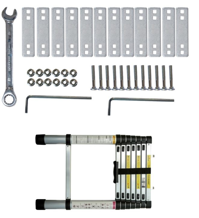 - Į komplektą įeina: automobilio palapinė, strypų rinkinys saulės skėčiams tvirtinti, sulankstomos aliuminio kopėčios, plieninių spaustukų ir varžtų rinkinys su veržliarakčiu praktiškoje pakuotėje, stovyklavimo lempa