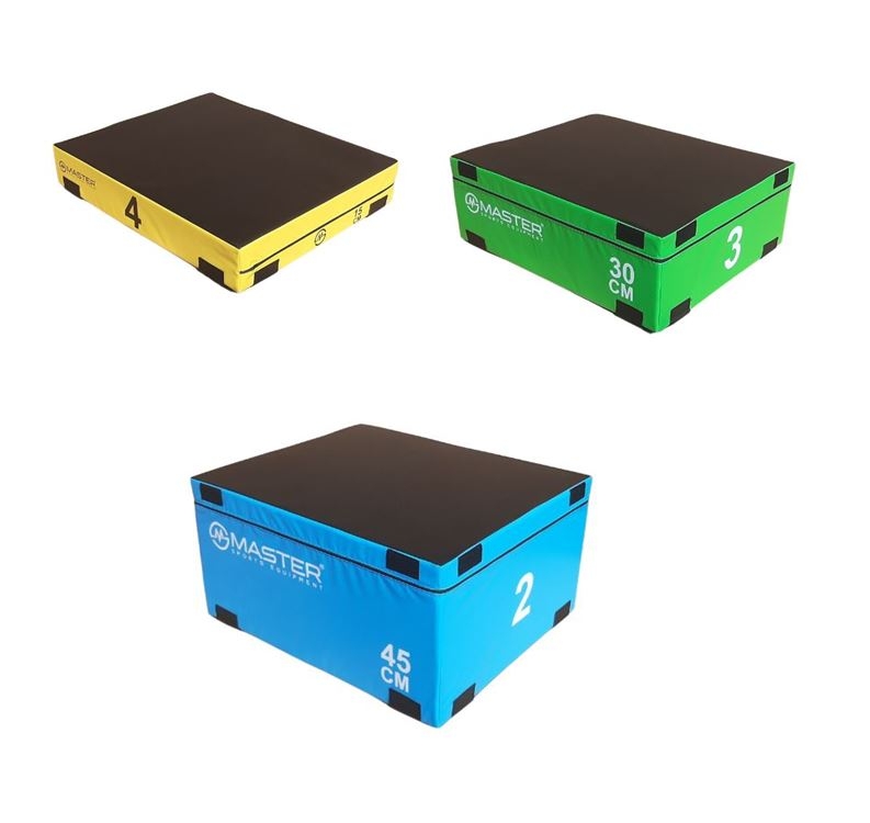 MASTER Soft treniruočių plyo dėžės – saugiausias pasirinkimas šuolių, šoklumo ir kitų dinaminių pratimų treniruotėms. Sutvirtinta tanki putų medžiaga efektyviai sugeria smūgius nusileidimo metu, išlaikydama stabilumą ir patikimumą.