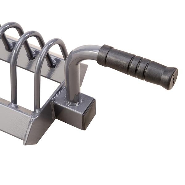 Šis stovas leidžia lengviau palaikyti tvarką ir transportuoti svarmenis bet kurioje sporto salėje. Stovo medžiaga yra tvirtas plienas. Maksimali apkrova 250 kg. Dėl tvirtų ir stabilių ratukų, sumontuotų vežimėlyje, pervežti tokį svorį nėra problemų. Dar didesniam komfortui vežimėlyje yra rankena, padengta neslidžia medžiaga, užtikrinančia tvirtą ir patikimą sukibimą.