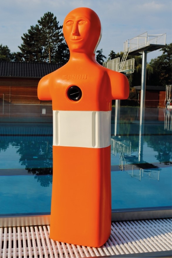 Treniruojantis, galima nuskandinti manekeną vandenyje arba palikti plūduriuoti (įpilti oro ar vandens ir uždėkite dangtelius).