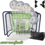 – Vartai 2 vnt., 115x90x50cm., plieninis apvalus rėmo profilis 24 mm. x 0,6 mm., tinklas juodas poliesteris, langelis 4×4 cm.