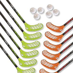 12 grindų riedulio lazdų ir 6 kamuolių rinkinys kartu su praktiška kuprine.