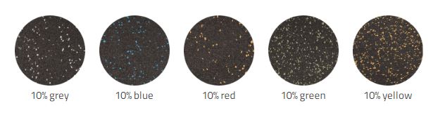 Sporto grindų dangos gaminamos daugiausia iš perdirbtos juodos gumos drožlių, gautų iš automobilių ir sunkvežimių padangų.