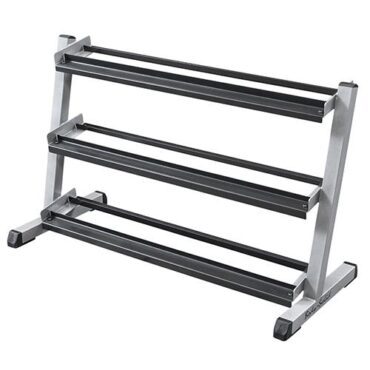 Šis trijų lygių hantelių stovas gali talpinti 10 šešiakampių hantelių porų tarp 2 ir 22kg.