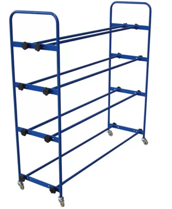 Mobilus kamuoliukų stovas yra labai patogus ir praktiškas daiktas kamuoliukams laikyti ir transportuoti. Milteliniu būdu dažyta (bet kokios spalvos) plieninė vamzdinė konstrukcija su galimybe reguliuoti lentynos plotį pagal skirtingus kamuoliukų skersmenis. Įrengtas keturiais transportavimo ratukais.
