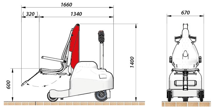 • Automatinis vairas, judesio perjungimo aukštyn ir žemyn valdymo svirtis, akumuliatoriaus įkrovos lygio indikatorius, įjungimo išjungimo ir avarinis mygtukas