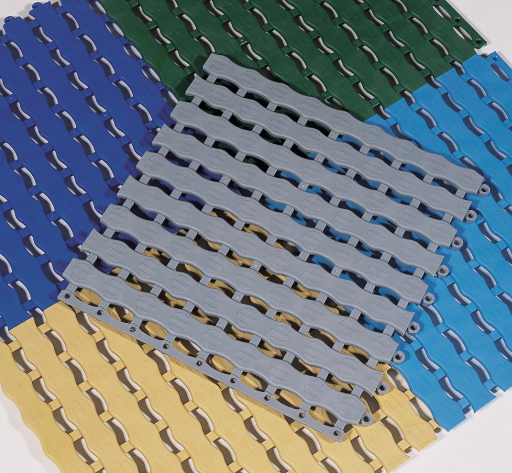 Plytelės lengvai prisitaiko prie įvairių paviršių, yra atsparios ir ilgaamžės. Įrengimas itin paprastas – plytelės turi savaime užsifiksuojančią jungimo sistemą, leidžiančią visą dangą greitai susukti ir perkelti. Neslidus paviršius su drenažo raštu padidina saugumą šlapiose zonose. Plytelės sukurtos taip, kad jas būtų lengva prižiūrėti – jos atsparios chlorui, rūgštims ir įvairiems plovikliams.