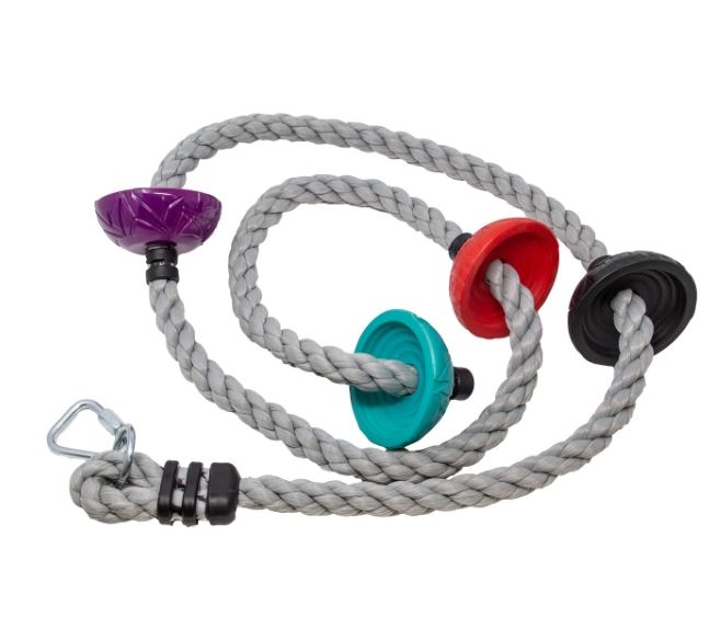 SCHILDKROT Ninja Rope laipiojimo virvė yra 2,5 m ilgio ir 2,6 cm storio, oro sąlygoms atspari virvė, turinti 4 apvalius laiptelius 45 cm atstumu vienas nuo kito. Su pridedamu metaliniu karabinu virvę galima lengvai pritvirtinti prie Ninjaline, sūpynių rėmų, namelių medžiuose ar šakų.