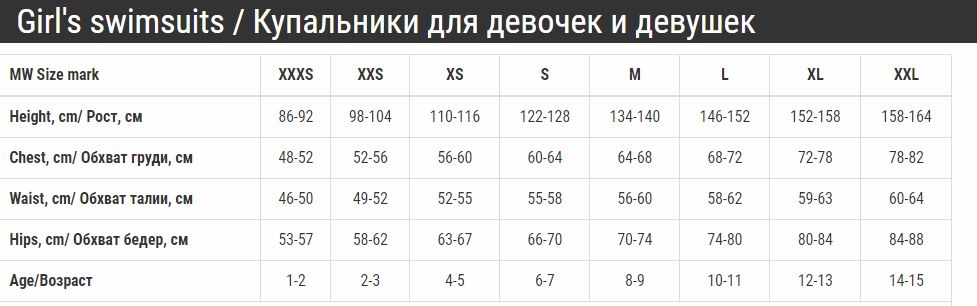 REKOMENDUOJAME RINKTIS PLAUKIMO APRANGĄ VIENU DYDŽIU DIDESNĘ NEI NURODYTA DYDŽIŲ LENTELĖJE!