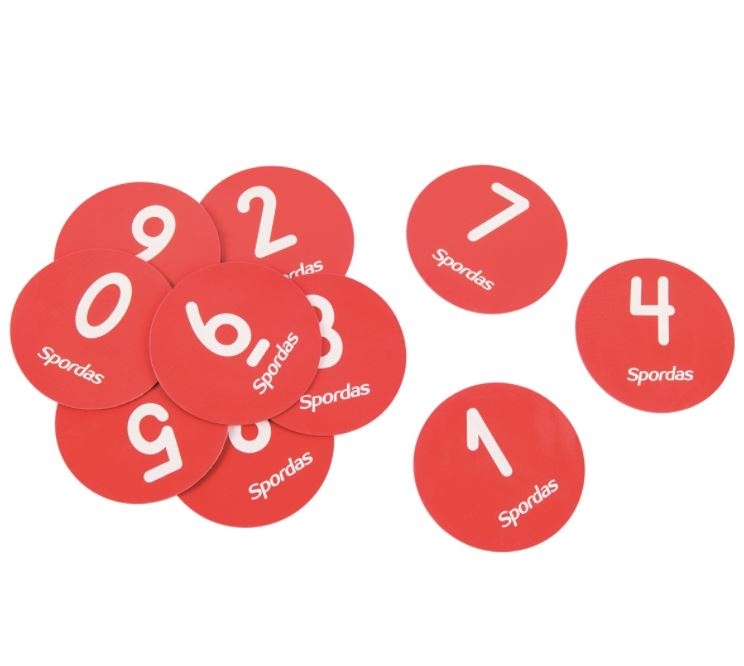 Maži, apvalūs žymekliai sunumeruoti nuo 0 iki 9.