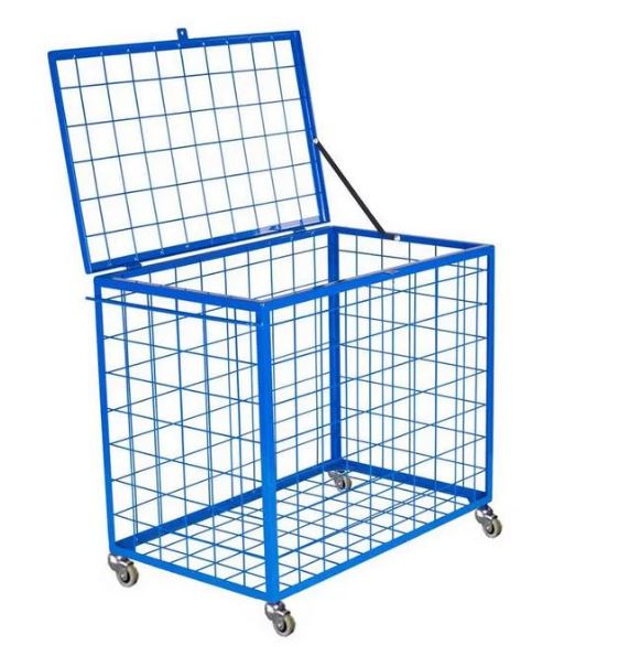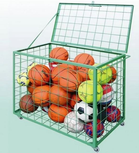 Idealiai tinka kamuoliukams laikyti ir transportuoti. Milteliniu būdu dažyta (bet kokios spalvos) plieninė konstrukcija su dangčiu. Turi keturis transportavimo ratukus, kad būtų lengva manevruoti. Matmenys: 100 x 60 x 80 cm.