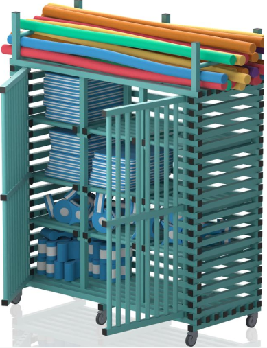 Mobili spinta puikiai tinkama laikyti sportinį inventorių, yra trys skyriai, o lentynos gali būti išimamos.