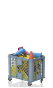 60 x 40 x 50 cm – žemas vežimėlis smulkiam inventoriui. Tūris 67 litrai.