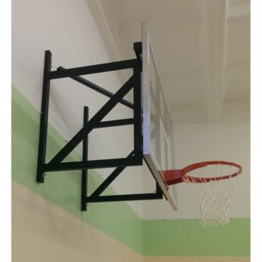 Sulankstoma krepšinio konstrukcija, projekcija nuo sienos iki lentos 1,90 – 2,50 m.