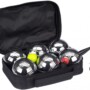 Su šiuo petankės šešių kamuolių rinkiniu paverskite seną sportą moderniu! Be standartinių 73 mm chromuotų kamuolių, gausite ir mažą medinį rutuliuką, matavimui skirtą juostą ir ant 95 cm poliamido virvės pakabintą magnetą su žiedu gale. Tad galėsite paimti kamuoliukus nesilenkiant. Universalus  petankės rinkinys yra supakuotas patogiame nešimui skirtame dėkle. Žaiskite šį klasikinį žaidimą paplūdimyje ar stovyklavietėje! Į pristatymą įeina šeši chromuoto plieno kamuoliukai su 2 skirtingais grioveliais, vienas medinis rutuliukas (taikinys), viena matavimui skirta juosta, vienas magnetas su gale žiedą turinčia 95 cm poliamido virve, viena žaidimo taisyklių kortelė ir vienas nešimui skirtas dėklas iš poliesterio.