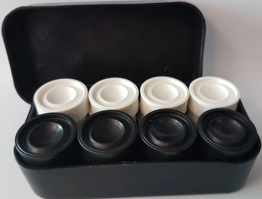 Rinkinį sudaro 12 baltų ir 12 juodų šaškelių, kurios patogiai telpa ant standartinės šaškių lentos. Dėl universalaus dydžio šaškes lengva paimti, jos stabiliai stovi ant lentos ir tinka daugumai šaškių komplektų.