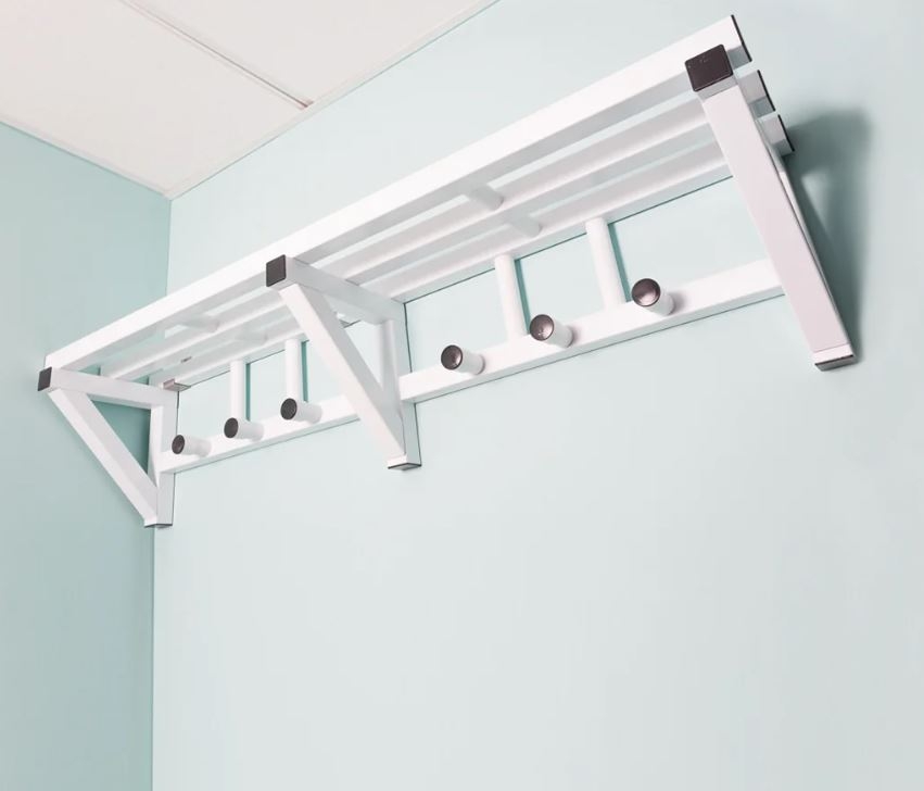 Plastikinis sieninis laikiklis drabužiams su lentyna, ilgis 100-200 cm