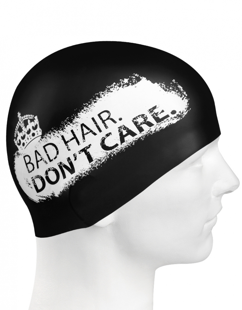 Plaukimo kepurėlė „MAD WAVE DONT CARE” pagaminta iš aukštos kokybės chlorui atsparaus silikono, puikus pasirinkimas reguliariai treniruojantis baseine.