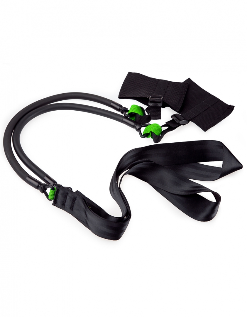 Diržai prideda pasipriešinimo kojoms, tuo pačiu metu kai treniruojama smūgio jėga.