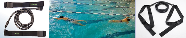Treniruoklis Belt Trainer two side, naudojamas plaukimui su pasipriešinimu ir pagreitėjimo imitacijoms. Jis padeda įgyti įgūdžių greitesniam pagreitėjimui ir pagerina kiekvieno grybšnio galios komponentą, taip pat treniruoja raumenų ištvermę. Ilgis 2,40 m.