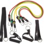 DRY TRAINING MULTI rinkinį sudaro dvi rankenos, trys atsparumo virvelės, du dirželiai kulkšnims, vienas durų inkaras ir paminkštinimas.
