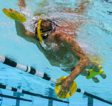 Plaukimo plaštakos padeda stiprinti viršutinę kūno dalį.