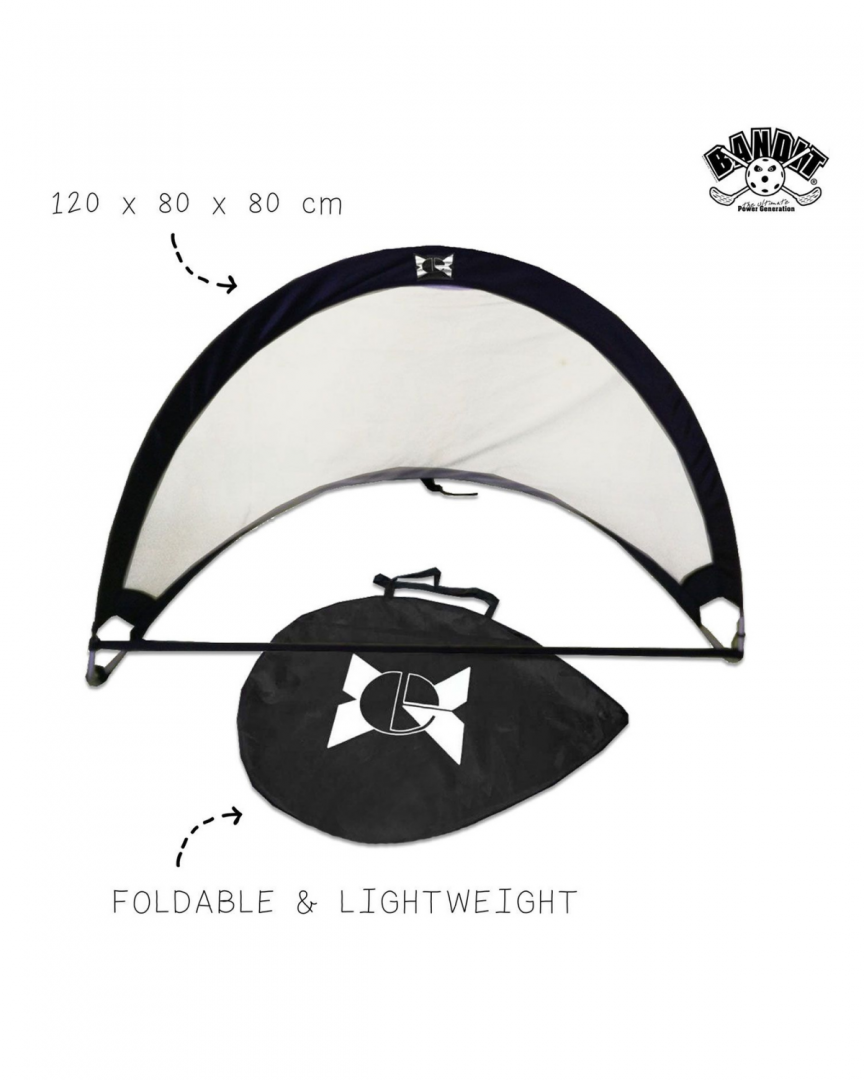 Grindų riedulio vartai „Pop-up Bandit“ yra puikus pasirinkimas norintiems žaisti grindų riedulį mažoje erdvėje.