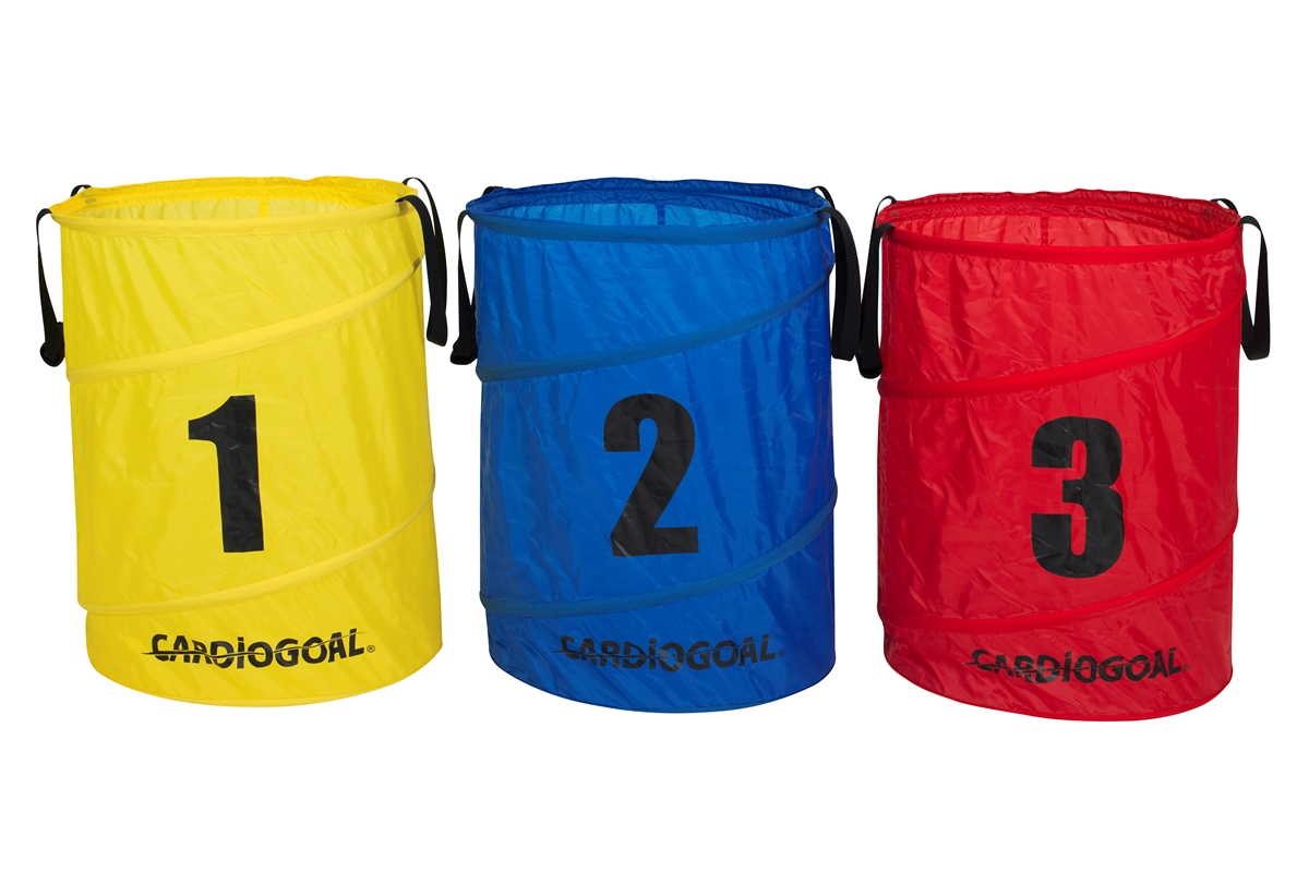 Spalvotų krepšių rinkinys Cardiogoal žaidimui – universalus ir praktiškas įrankis vaikų motorinių įgūdžių bei fizinio aktyvumo ugdymui. Krepšiai su patogiomis rankenomis puikiai tinka mokytis kamuolio padėjimo, metimo įvairiais būdais, lavinti rankų–akių koordinaciją, atmintį, spalvų ir skaičių atpažinimą.