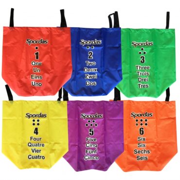 Mūsų „Poull Ball“ pradinio rinkinio turinys: 2 pripučiami „Poull Ball“ kubeliai, 2 dideli raudoni pagrindai, 2 trumpi stulpeliai, 2 platformos,