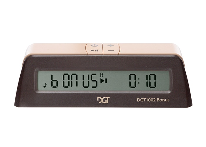 Šioje dėžutėje rasite perlenkiamą pusiau šachmatų lentą, „DGT1002“ laikrodį, bei aukštos kokybės DGT plastikines šachmatų figūras kurių karaliaus aukštis 86mm.