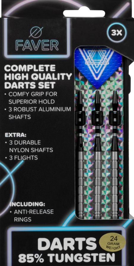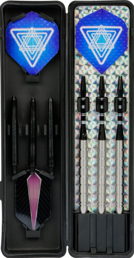 | Pakuotėje | 3x volframo koteliai su plieniniu antgaliu, 3x aliuminio koteliai, 3x nailono koteliai, 2×3 skriejantys sparneliai 1 dėžutė strėlyčių laikymui. |