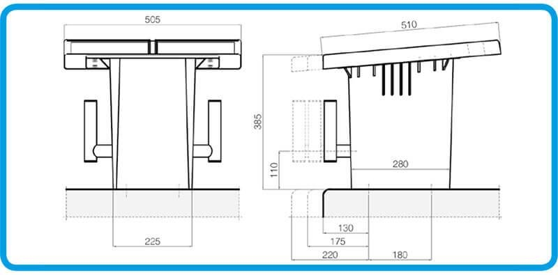 Platforma: neslidi iš ABS. Spalva: balta (RAL 9010) arba mėlyna (RAL 5012).