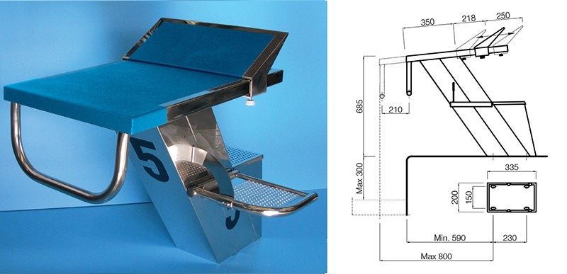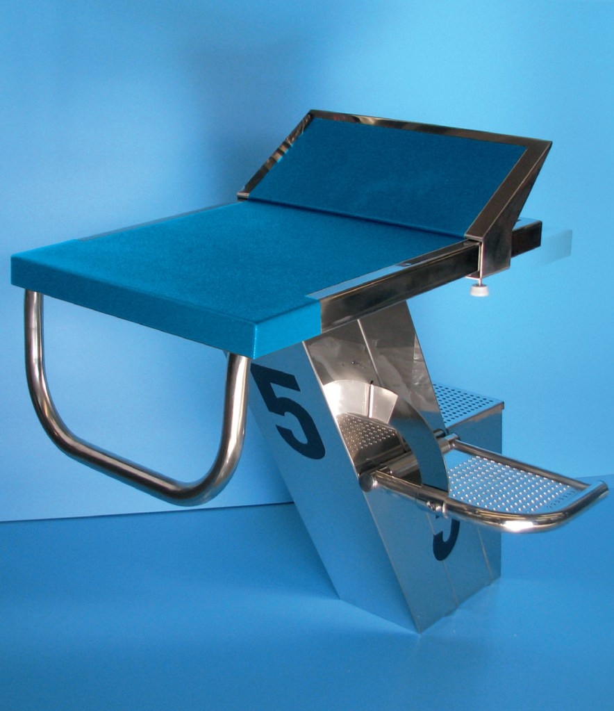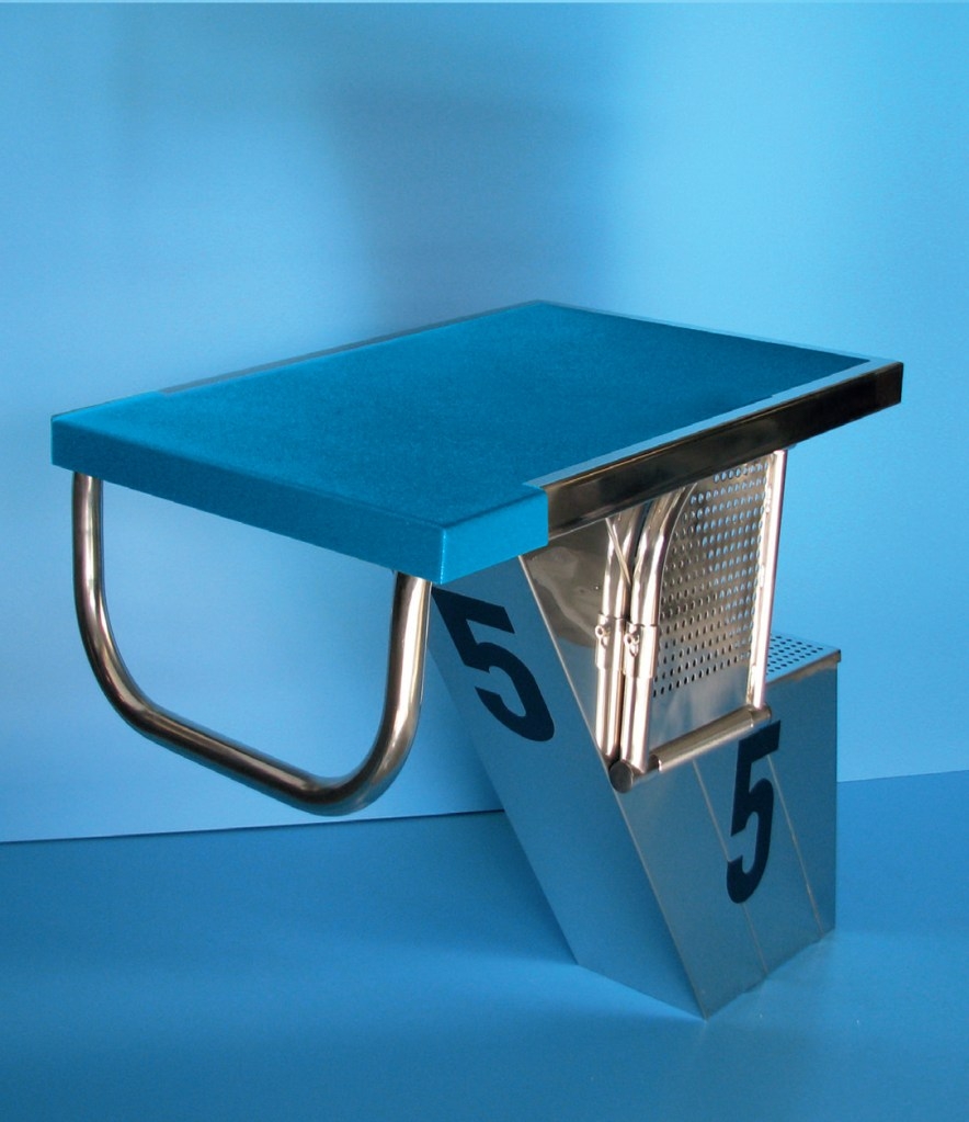 Platforma: AISI316 nerūdijančio plieno su varžybiniu starto atsispyrimo elementu (reguliavimo diapazonas 0-21 cm.), kuri galima lengvai nuimti/uždėti, padengti neslidžia danga, atlenkiama pakopa.