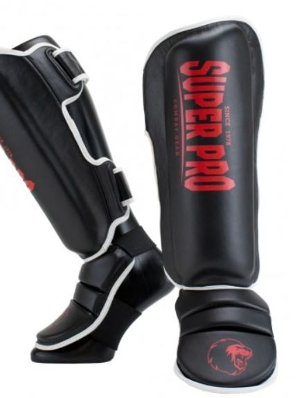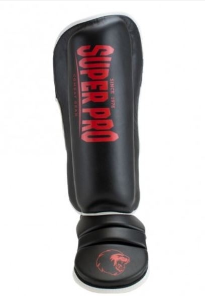 Super Pro Combat Gear blauzdų apsaugos, juoda/raudona