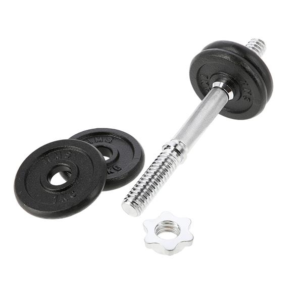 Strypas turi griovelį rankeną, todėl neslysta mankštos metu. Srieginiai hanteliai kartu su žvaigždutėmis garantuoja vienodą svorio paskirstymą.