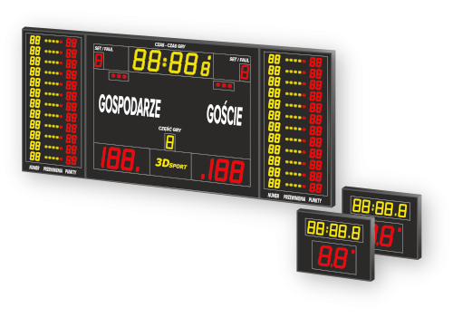 - Žaidimo laikas / laikrodis (00:00 – 99:00), 0,1 sek tikslumas – 22 cm aukščio, reguliuojamas bet kokia konfigūracija