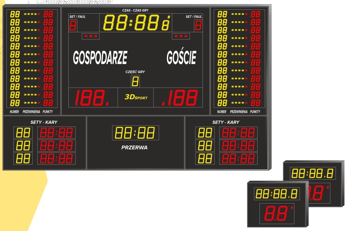 - Žaidimo laikas / laikrodis (00:00 – 99:00), 0,1 sek tikslumas – 22 cm aukščio, reguliuojamas bet kokia konfigūracija