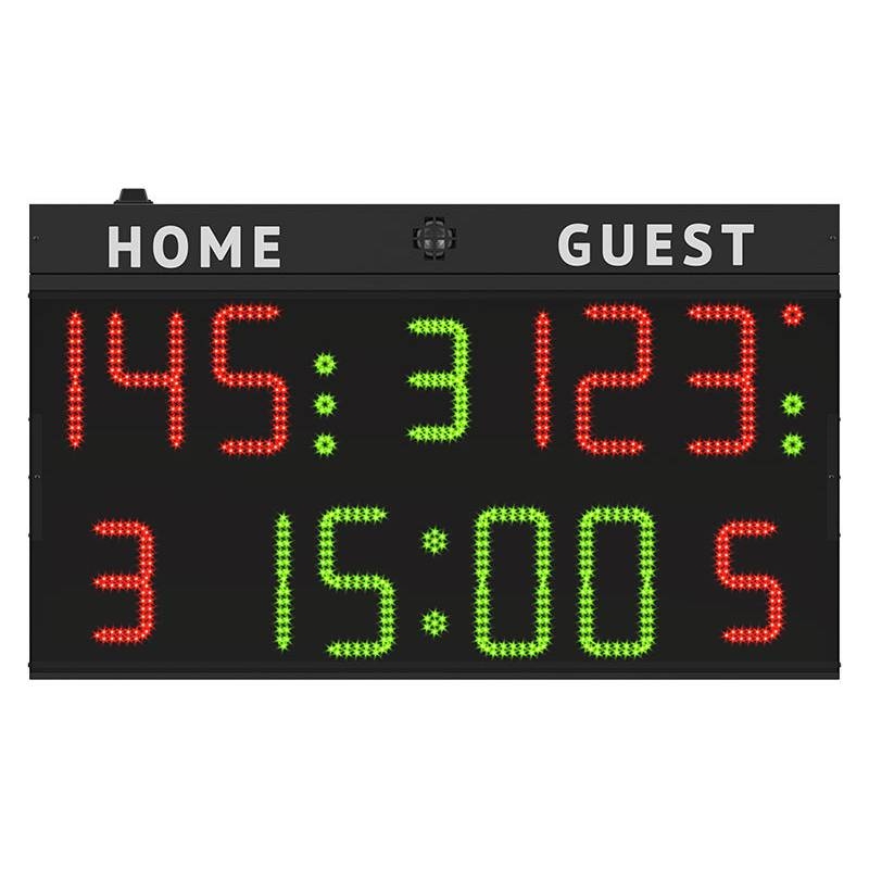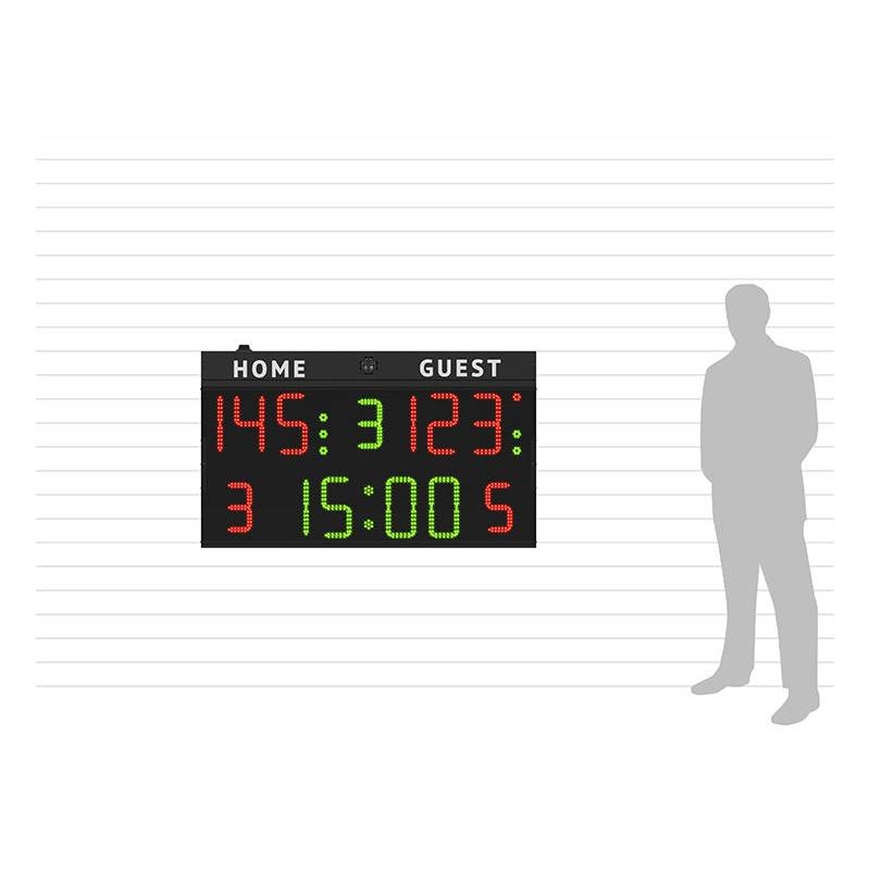 - Pertraukos (3 šviesos indikatoriai kiekvienai komandai) – 2.5 cm skersmens,