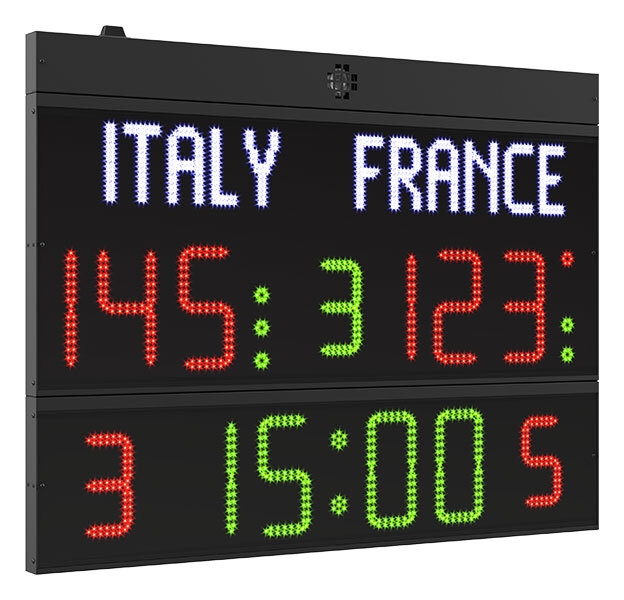 - Programuojami komandų pavadinimai (po 6 simbolius komandai) – 16 cm aukščio,