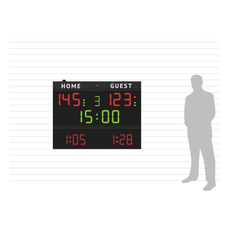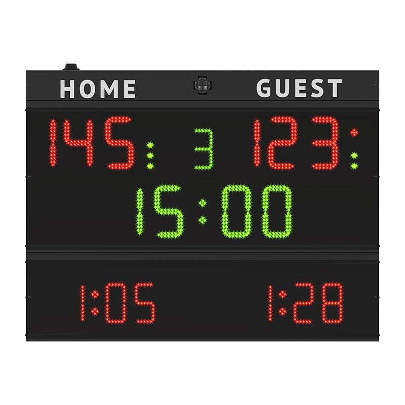 - Pertraukos (3 šviesos indikatoriai kiekvienai komandai) – 1.5 cm skersmens,