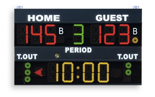 - Žaidimo laikas. Naudodami valdymo konsolę (įsigyti atskirai), galite rinktis skirtingus laiko rėžimus pagal sporto šakas: žaidimo ir intervalų laikas, skaičiavimas įprastai arba atbuline eiga, dešimtosios sekundės dalies rodymas, dienos laiko rodymas ir panašiai.
