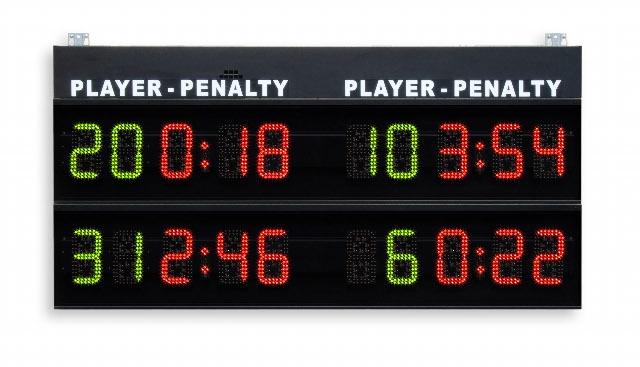 - Žaidėjų pražangos laikas (0:00-9:59) – 20 cm aukščio.