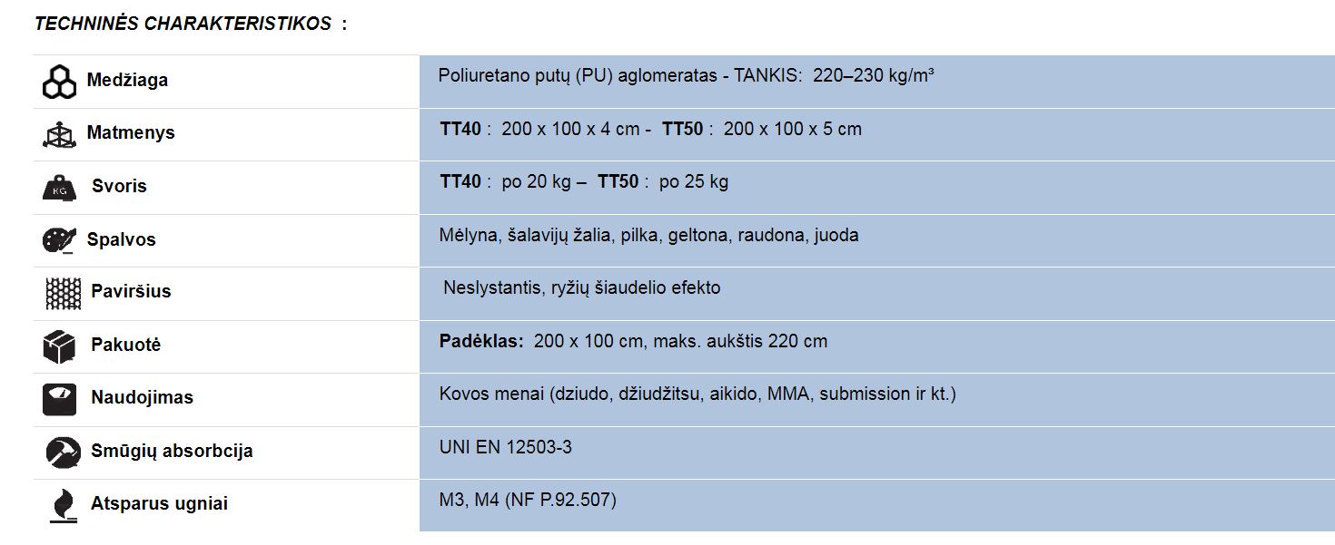 Tatami TRADITIONAL NON SLIP, TT40 ir TT50. 200 x 100 cm