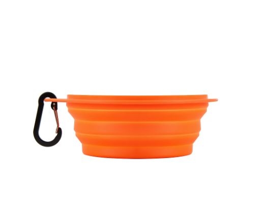 1x vidutinis sulankstomas silikoninis dubuo su karabinu, skersmuo 12,5 cm – aukštis 5,5 cm