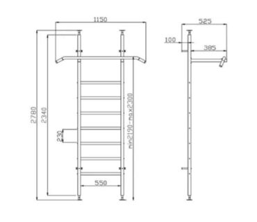 Tvirtinimo elementai gimnastikos sienelėms iki 260 cm. aukščio