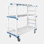 Vežimėlis CCL1400B – tai universalus ir praktiškas baldas su ratukais, sukurtas specialiai sporto salėms, baseinams, persirengimo kambariams bei kitoms erdvėms, kur reikalingas patogus daiktų transportavimas ir susidėjimas. Šis modelis išsiskiria integruota pakaba su kabliukais abiejose pusėse – po 6 kabliukus kiekvienoje, tad drabužių ar sportinės aprangos pakabinimas tampa paprastas ir funkcionalus. Vežimėlis pagamintas iš PVC plastiko, kuris yra atsparus aplinkos poveikiams: korozijai, drėgmei, įvairių tipų valikliams.