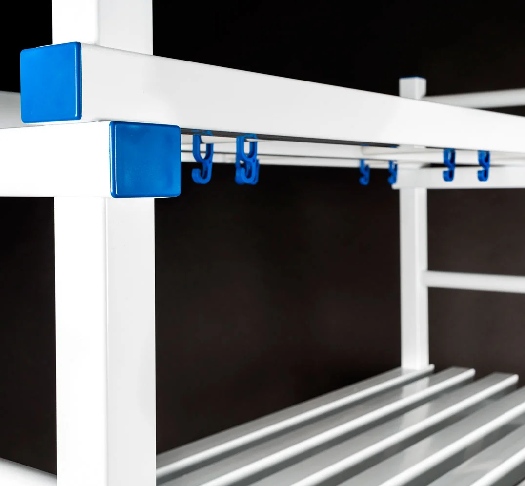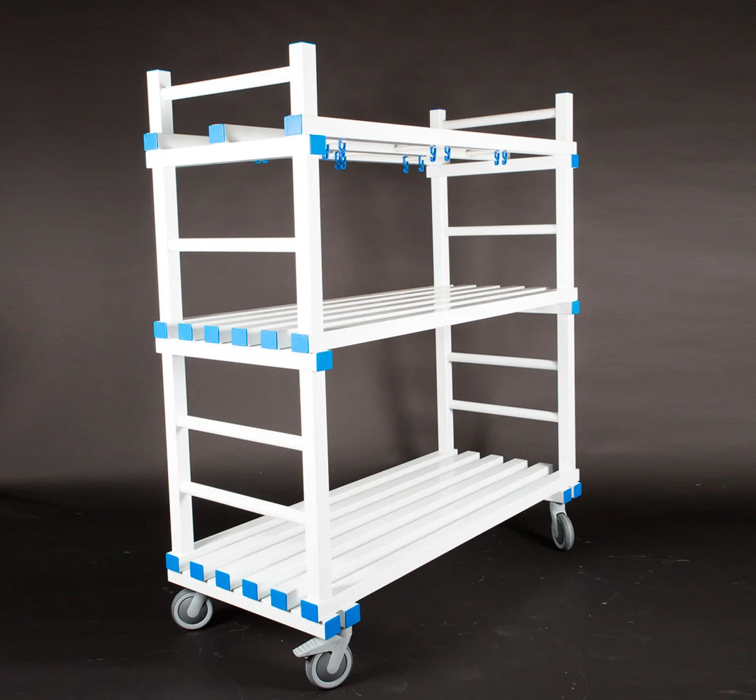 Vežimėlis CCL1400G – tai universalus ir praktiškas baldas su ratukais, sukurtas specialiai sporto salėms, baseinams, persirengimo kambariams bei kitoms erdvėms, kur reikalingas patogus daiktų transportavimas ir susidėjimas. Šis modelis išsiskiria pakaba su slankiojančiais kabliukais abiejose pusėse, tad drabužių ar sportinės aprangos pakabinimas tampa paprastas ir funkcionalus. Vežimėlis pagamintas iš PVC plastiko, kuris yra atsparus aplinkos poveikiams: korozijai, drėgmei, įvairių tipų valikliams.